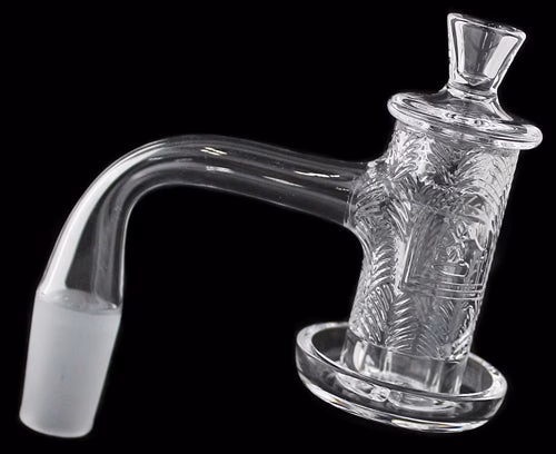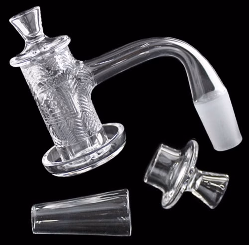 Fully Welded Etched Faceted Banger with Cone and Carb Cap. 14mm Male. 1ct.