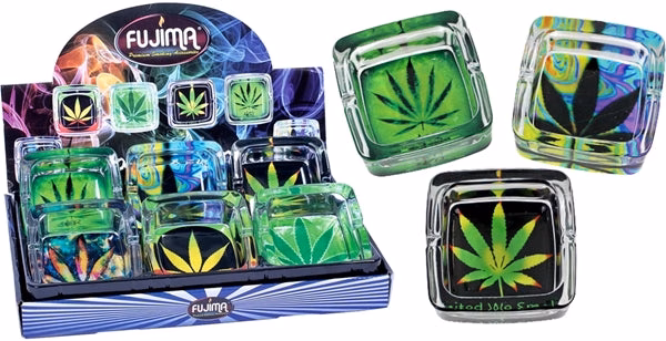 Square Glass Ashtray – Leaves. 4.5″. 6 Ashtrays In A Box Display.