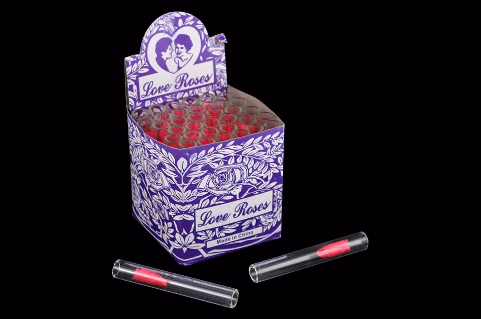 Glass Tube Love Roses 36pc Open End. 12mm x 2mm x 80mm. 36 Tubes In A Box Display.