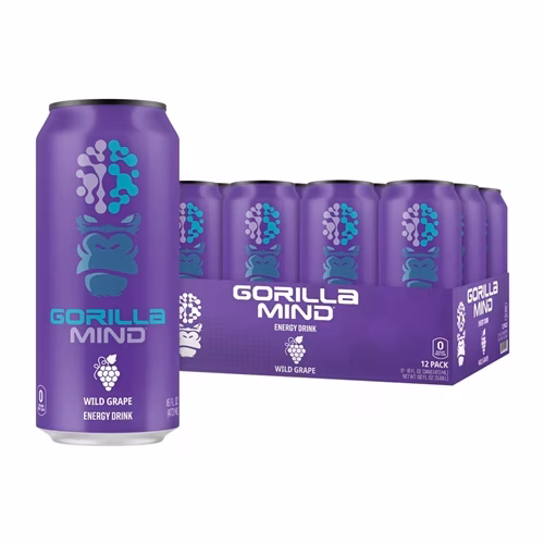Gorilla Mind Energy Drink – Wild Grape. 12 Cans.