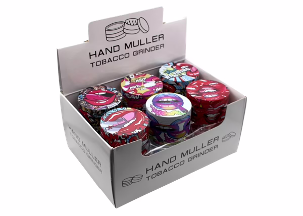 Hand Muller 50mm Tobacco Grinder – Lips. 12 Grinders in a Box Display.