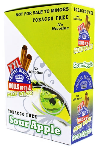 Royal Blunts XXL Herbal Hemp Wrap – Sour Apple. Box Contains 25 Packs With 2 Herbal Wraps Per Pack. Resealable Pouch. 1ct.
