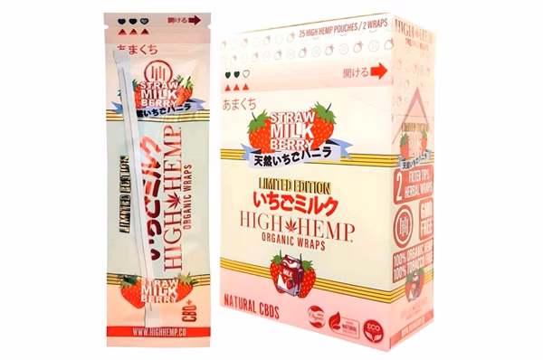 High Hemp Organic Wraps – Strawberry Milk. 25 Pouches In A Box With 2 Wraps Per Pouch.