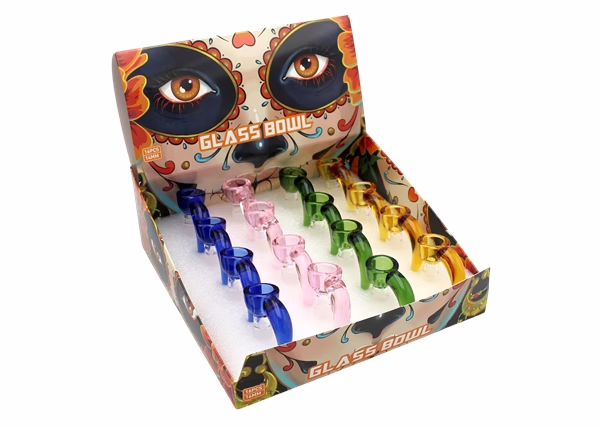 Horn Handle 14mm Glass Bowl Assortment. 16 Bowls in a Box Display.