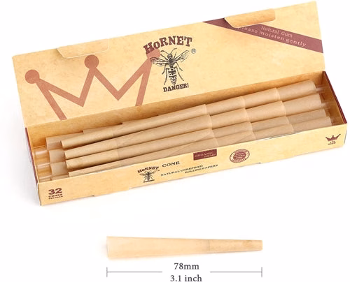 Hornet Natural Hemp Cones – 1 1/4. 20 Packs In A Box Display with 32 Cones Per Pack.