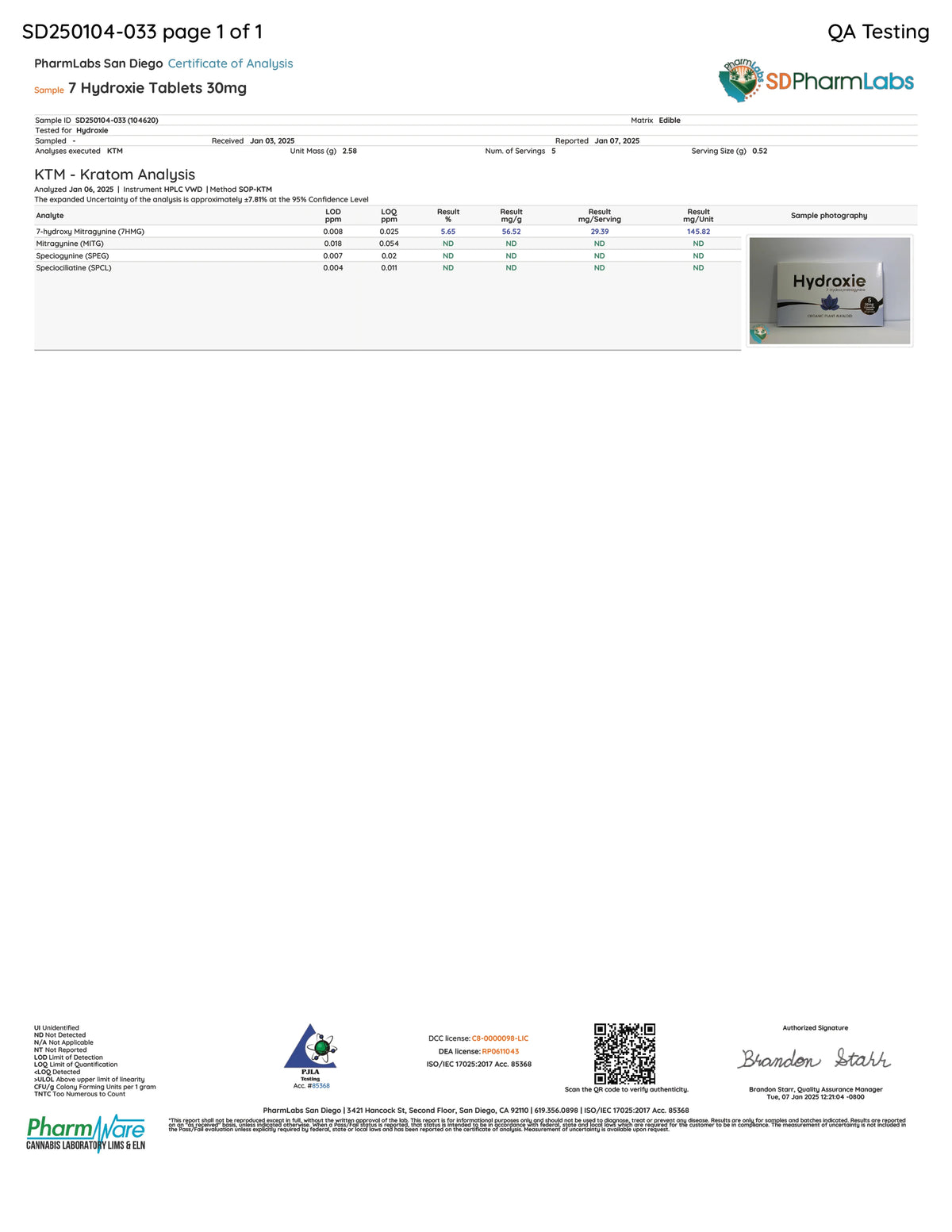 Hydroxie Organic Plant Alkaloid 30mg 7-OH 10-Tablets.