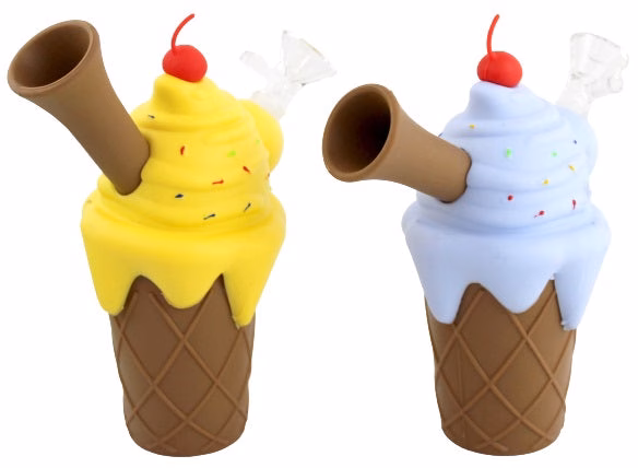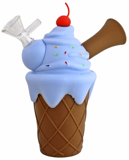 Ice Cream Silicone Bubbler Water Pipe with Glass Bowl. 6″. Colors May Vary. 1ct.