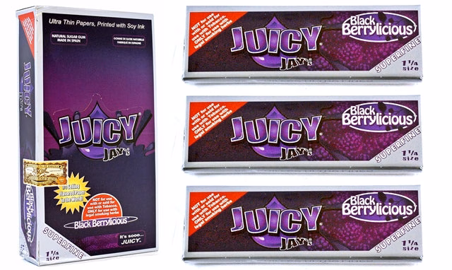 Juicy Jays Black Berrylicious 1 1/4 Ultra Thin Flavored Paper. 24 Packs Per Box With 32 Leaves Per Pack.