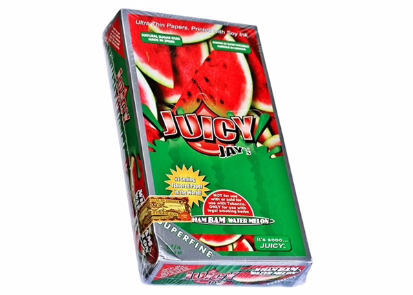 Juicy Jays Rolling Paper – Ultra Thin 1 1/4 Wham Bam Water Melon. 24 Packs Per Box With 32 Leaves Per Pack.