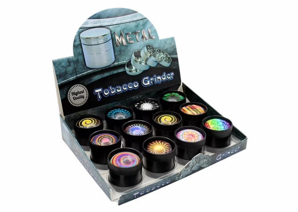 Kaleidoscope 30mm Metal Tobacco Grinder. 12 Grinders in a Box Display.