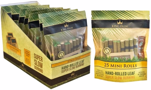King Palm Mini Rolls With Boveda Pouch. 8 Pouches In A Box Display With 1 Boveda Packet And 25 Mini Rolls Per Pouch.