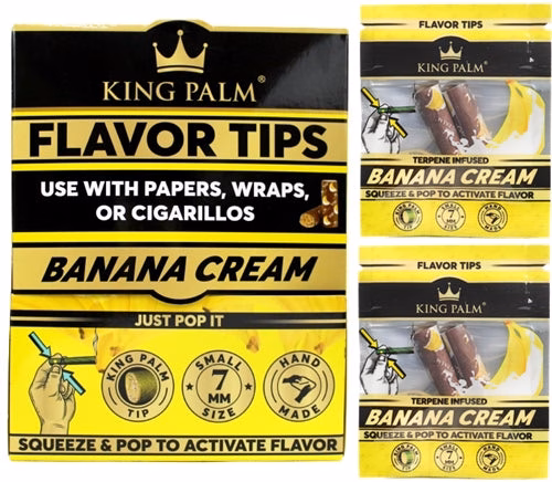 King Palm 7mm Flavor Tips – Banana Cream. 50 Packs With 2 Tips Per Pack In A Box Display.
