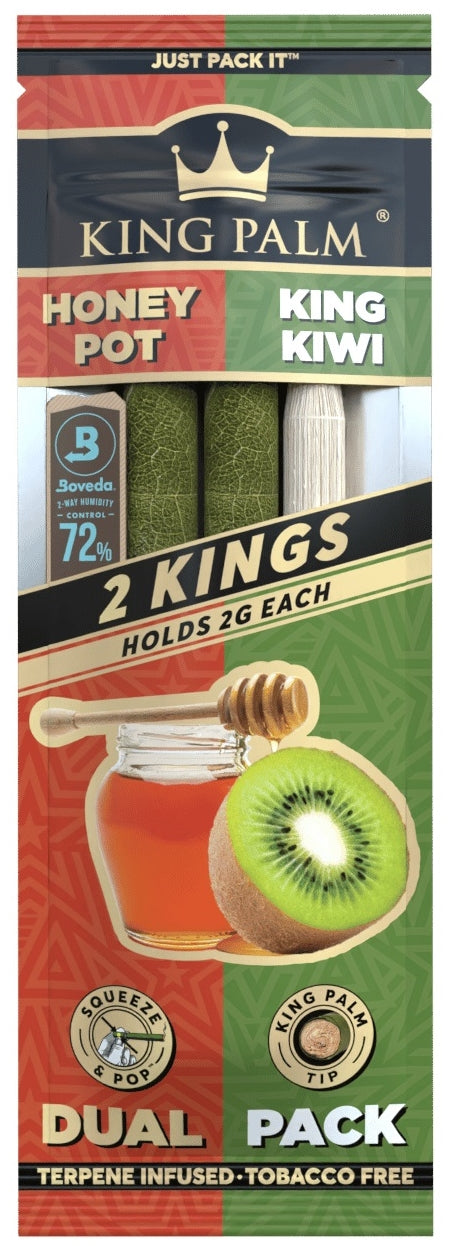 King Palm’s new king-sized Dual Pack will leave you wanting more. Experience the flavors of fresh-cut kiwis in one roll and the all-natural sweetness of honey in the other.