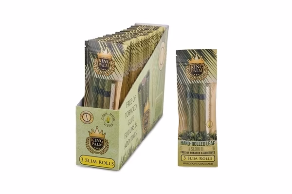 King Palm Natural Leaf Rolls. 24 Slim Pouches – 3 Rolls/Pouch.