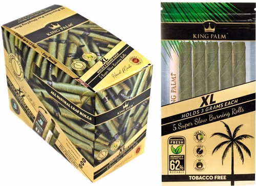 King Palm Natural Leaf Rolls – XL Size. 5 Rolls Per Pack With 15 Packs In A Box Display.