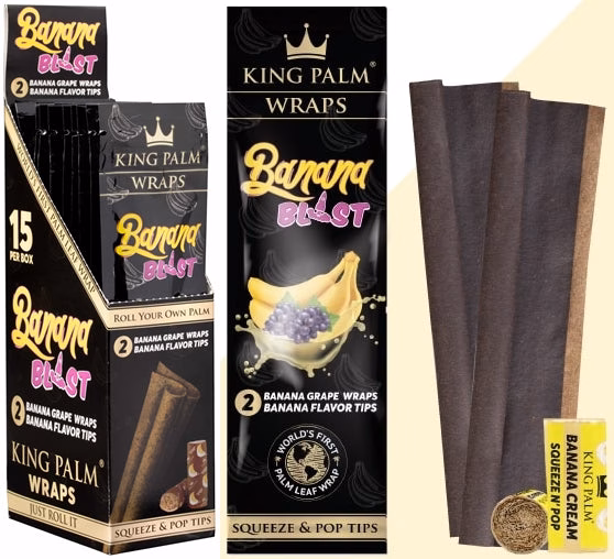 King Palm XL Wraps – Banana Blast. 15 Packs In a Box With 2 Wraps Per Pack.