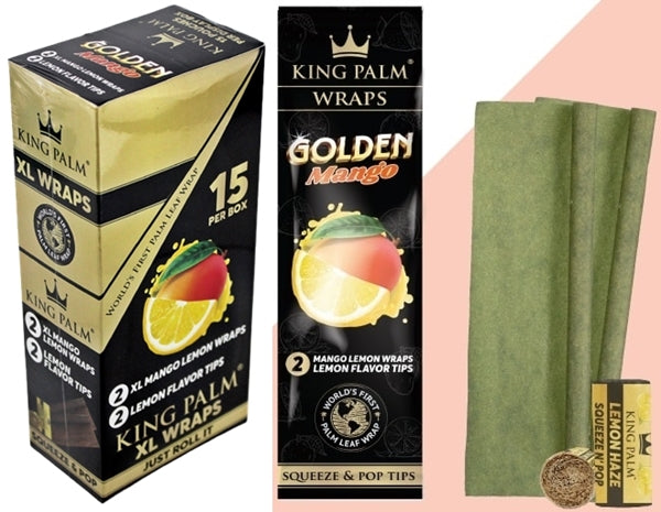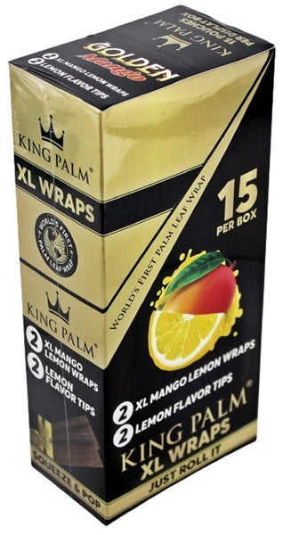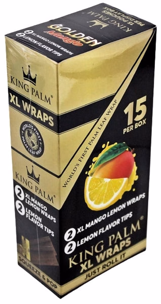 King Palm XL Wraps – Golden Mango. 15 Packs In a Box With 2 Wraps Per Pack.