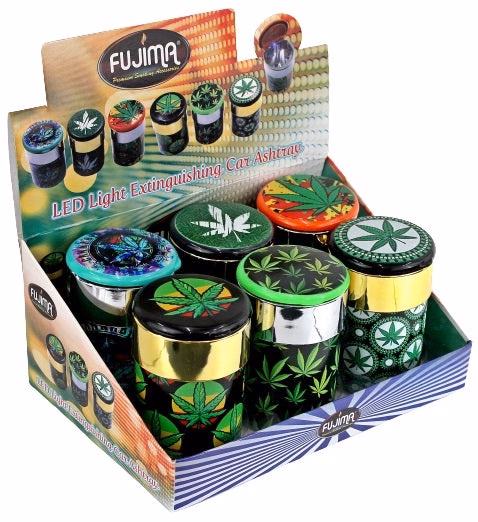 Leaf Extinguisher LED Light Car Ashtray. 4.5″ x 3″. 6 Cup Holder Ashtrays In A Box Display.