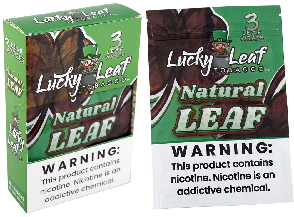 Lucky Leaf Tobacco – Natural Leaf. 16 Packs In A Box Display with 3 Leaves Per Pack.