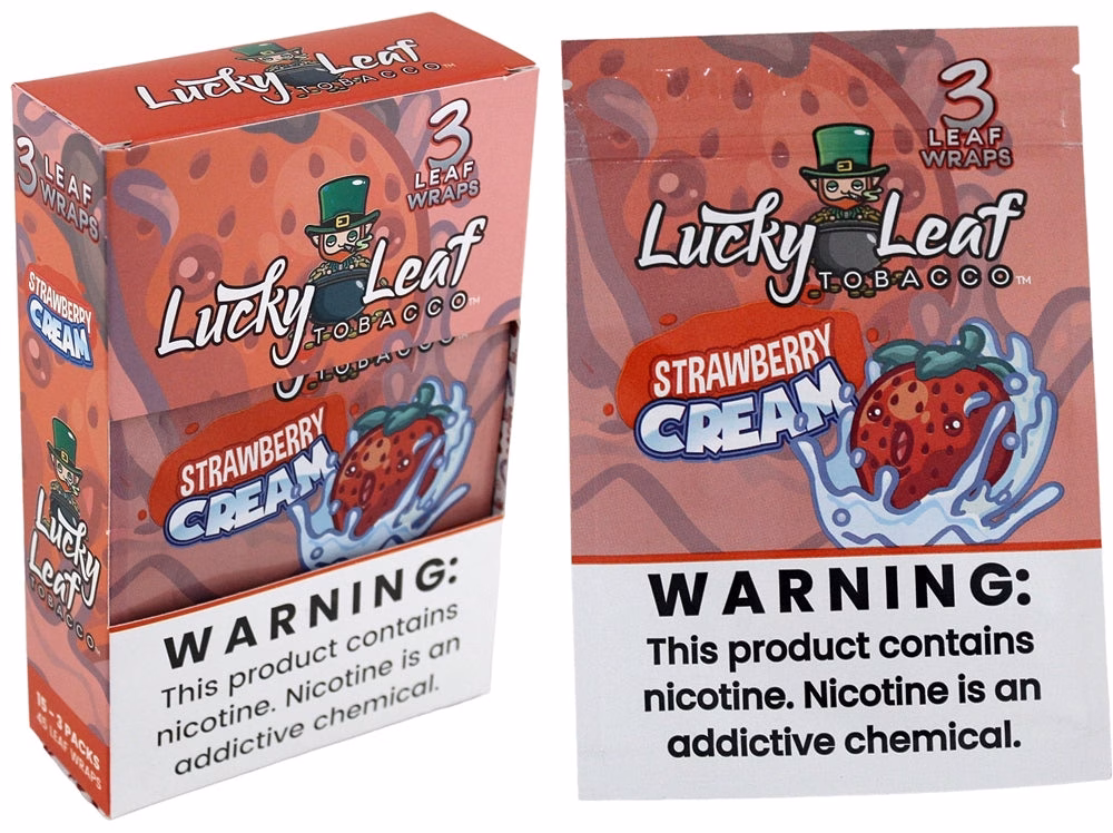 Lucky Leaf Tobacco – Strawberry Cream. 16 Packs In A Box Display with 3 Leaves Per Pack.