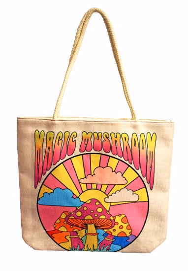 Magic Mushroom Techno Jute Tote Bag. 17″ x 15″ x 4.5″. 1ct.