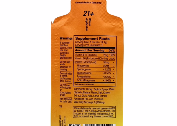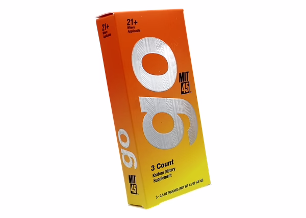 Mit 45 GoGel 2.0 Liquid Kratom Shot Pouches. 12 Packs in a Box Display with 3 Pouches Per Pack.