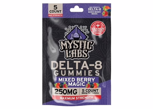 Mystic Labs 250mg Delta-8 Gummies – Mixed Berry Magic. 6 Packs In A Box with 5 Gummies Per Pack.