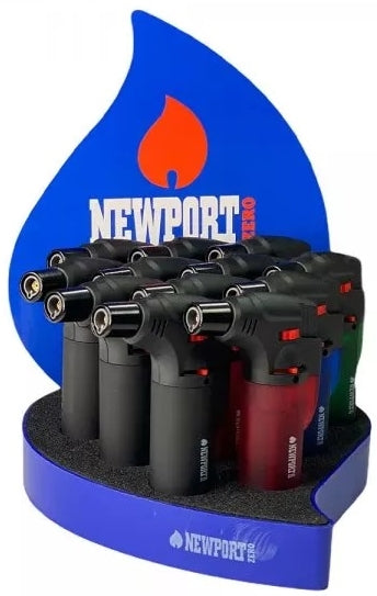NEWPORT ZERO Zuess Soft Touch Torch Gun Lighters. 12 Lighters In A Display.