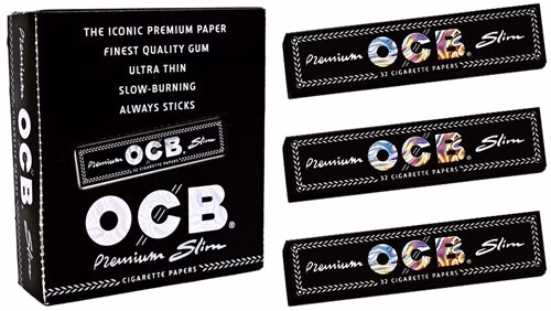 OCB Premium King Size Slim Rolling Paper. 24 Booklets In A Box Display With 32 Papers Per Book.