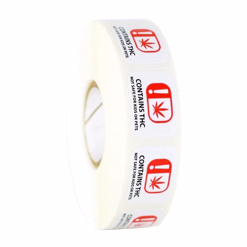 - 1000 stickers on roll – Contains THC Not Safe For Kids or Pets Warning Labels