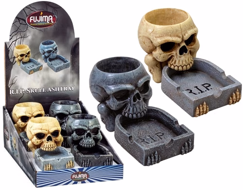 Polystone RIP Skull Ashtray. 3.5″ x 5″. 4 Ashtrays In A Box Display.