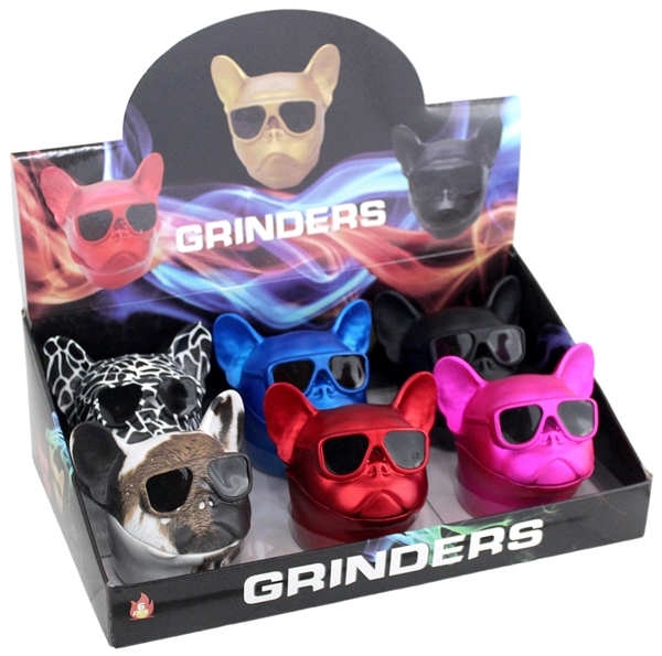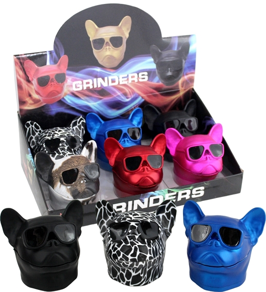 Pug with Sunglasses Grinders. Push in Auto-Open Drawer. 3.25″. 6 Grinders in a Box Display.