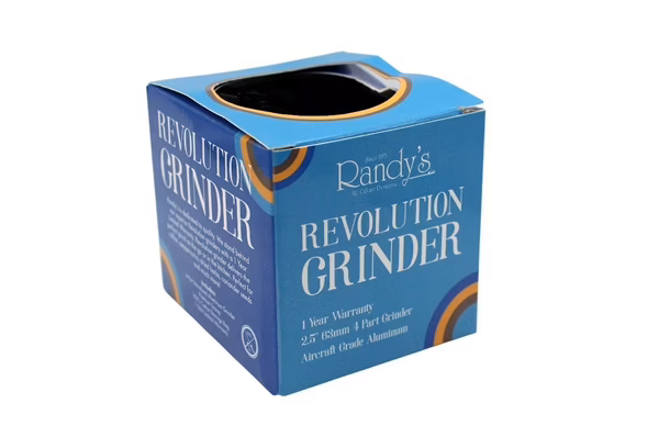 Randy’s Revolution Grinder is a 4 part grinder made of premium aircraft grade aluminum that includes a storage bag, premium scoop.