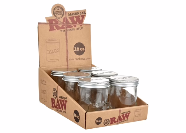 Raw 16oz Mason Jars. 6 Jars in a Box Display.