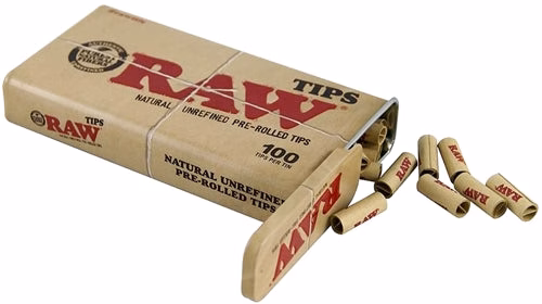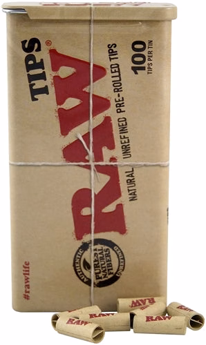RAW 6pk Pre Rolled Tips . 100 Tips Per Tin With 6 Tins In A Box Display.