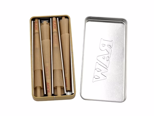 Raw Classic Cones 1 1/4 with Tin Container. 12 Tins in a Box Display with 8 Cones Per Tin.