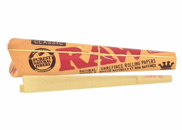 Raw Kingsize Unbleached Cones. Box contains 32 packs with three cones each.