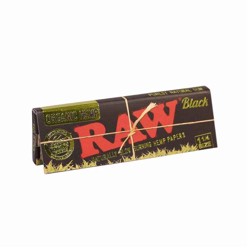 Raw Rolling Paper – Organic – Black. 1 1/4 Size. 24 Packs In A Box With 50 Leaves Per Pack.