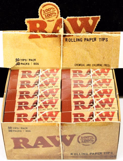 RAW Rolling Paper Tips. Chemical And Chlorine Free. 50 Tips/Pack, 50 Packs/Box. 1ct.