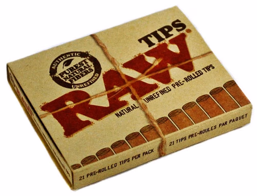 Raw Natural Unrefined PRE-Rolled Tips. 20 Packs With 21 Prerolled Tips Per Pack In A Box Display.