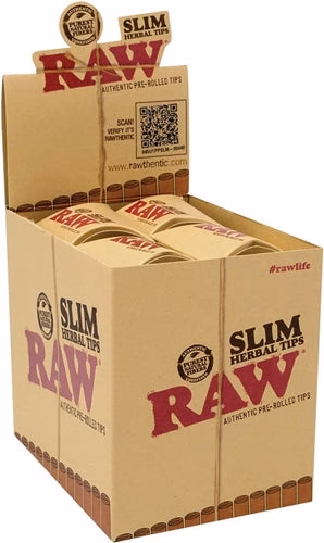 RAW Tips Pre-Rolled Slim. 20 Packs In A Box Display With 21 Tips Per Pack.