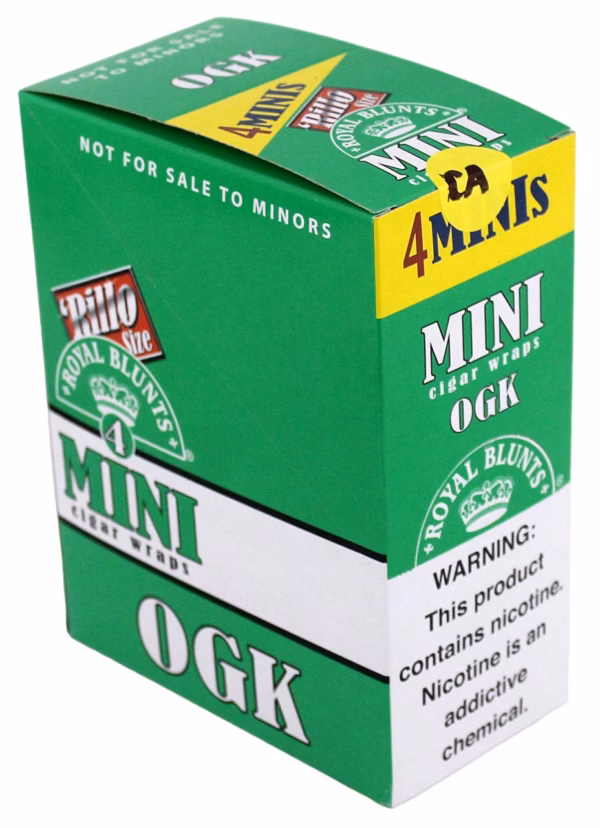 Royal Blunts Mini Cigar Wraps – OGK. 15 Pouches in a Box Display with 4 Mini Cigar Wrappers Per Pouch.