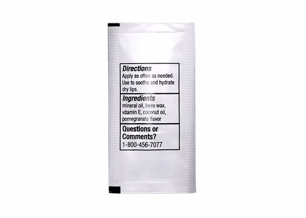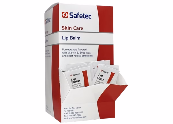 Safetec Skin Care Lip Balm 0.5 gram Packet Pomegranate. 144 Packets in a Box Display.