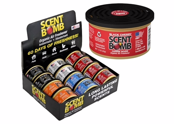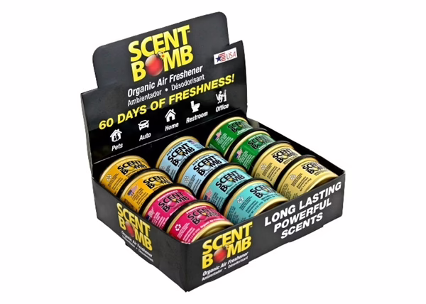 Scent Bomb Scent Cans Organic Air Freshener. 12 Cans in a Box Display.