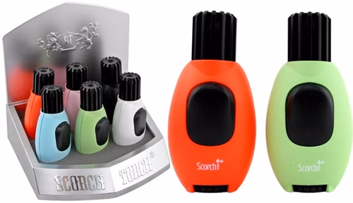 Scorch Torch Modern Button Aerodynamic Nozzle With Bush Button-Matte Finish. 6 Lighters In A Display.