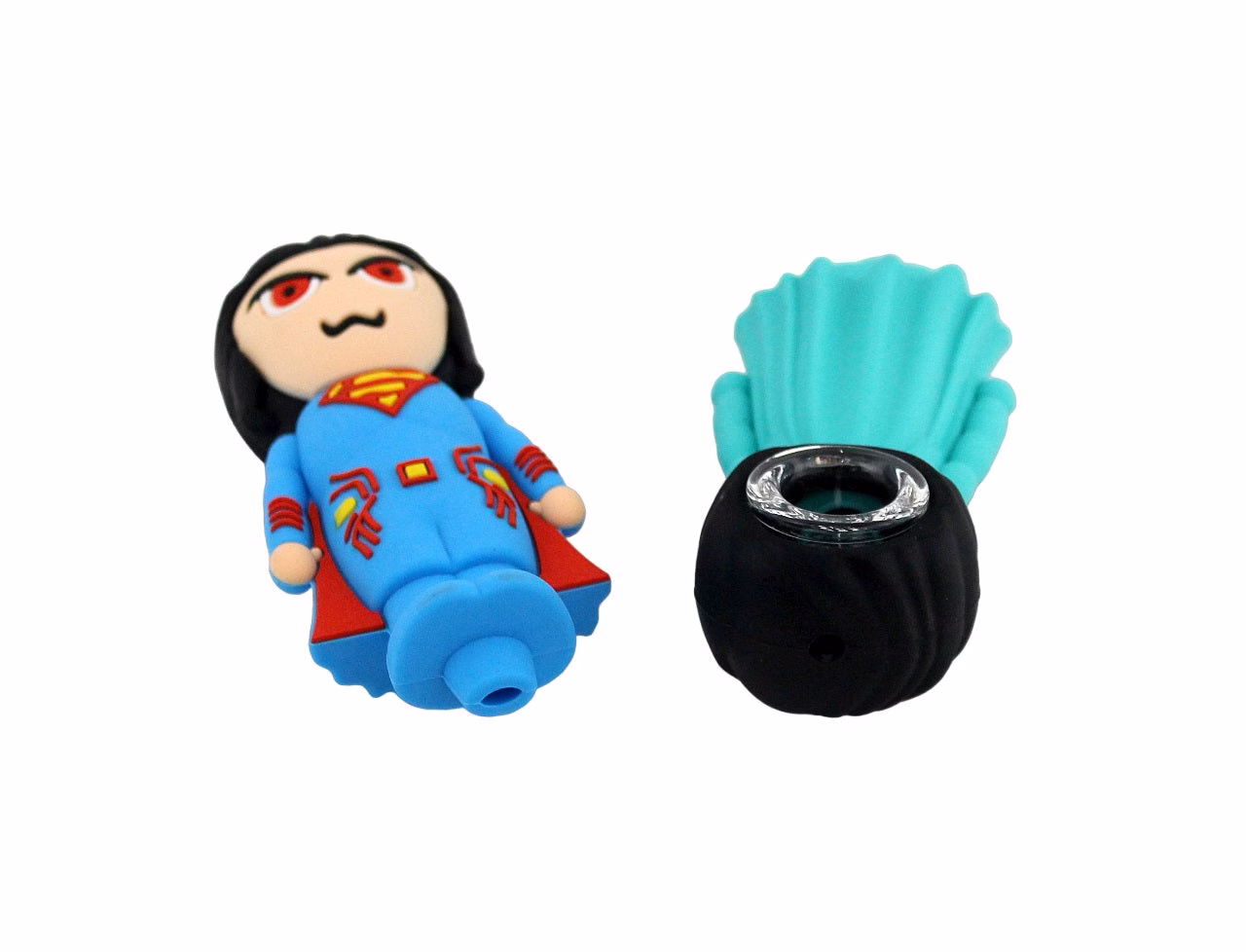Silicone Hand Pipe with Glass Bowl – Superman. Colors May Vary. 4″. 1ct.