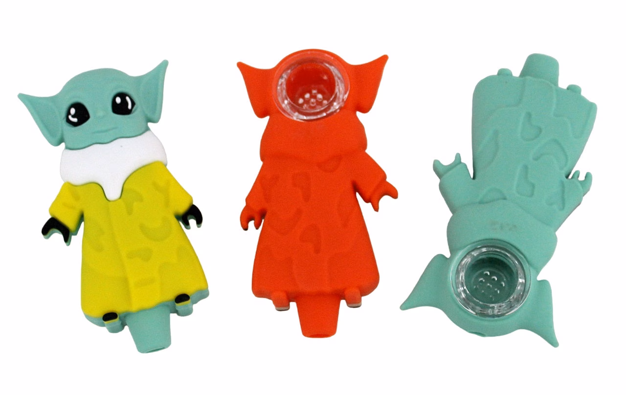 Silicone Hand Pipe with Glass Bowl – Yoda. Colors May Vary. 4″. 1ct.
