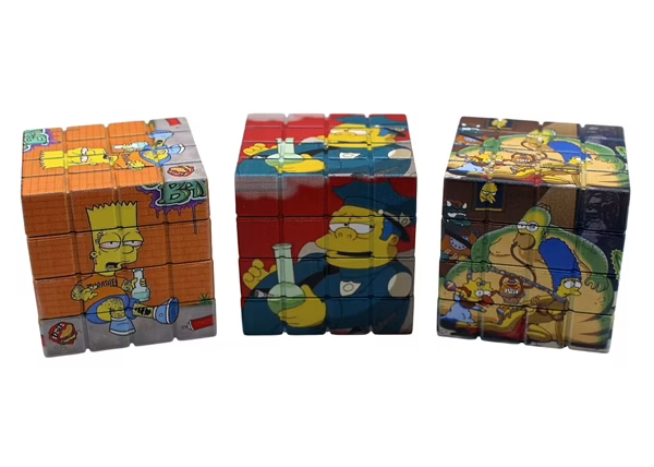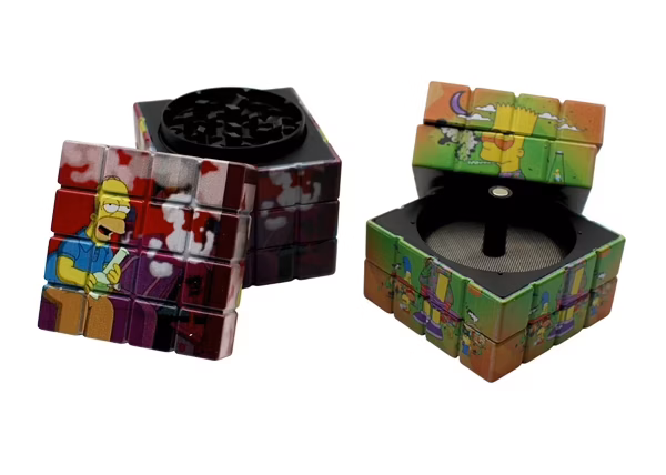 Simpsons Rubik’s Cube Zinc 4pc Grinders. 2.5″. 63mm. 6 Grinders in a Box Display.