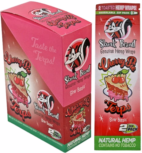 Skunk Brand Genuine Hemp Wraps – Cherry Pie. 25 Packs In A Box with 2 Wraps Per Pack.