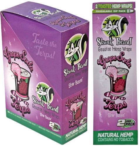 Skunk Brand Genuine Hemp Wraps – Grape Soda. 25 Packs In A Box with 2 Wraps Per Pack.
